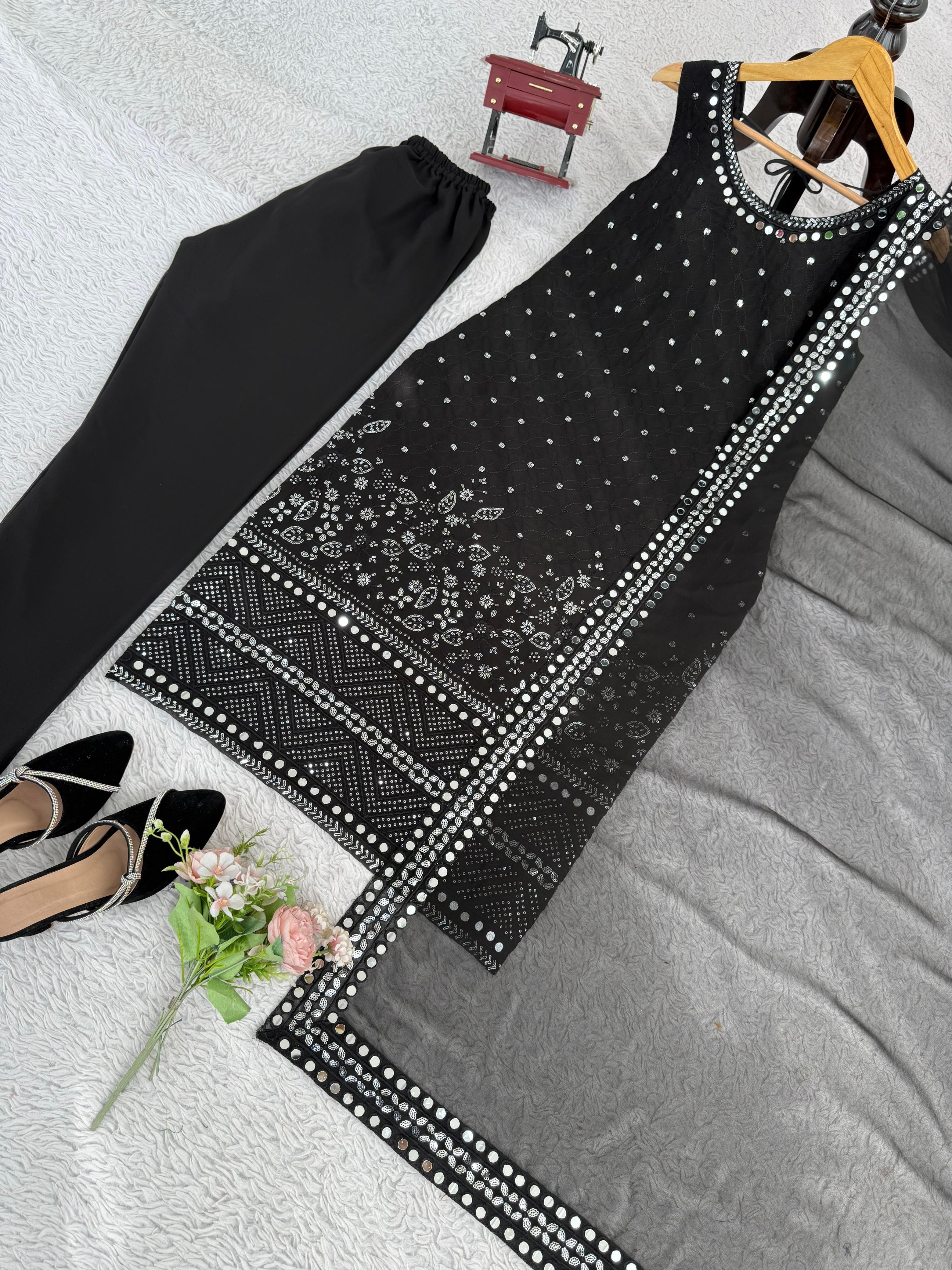 SAVE 44%Designer Georgette Suit Set with Real Mirror Work – Elegant 3-Piece Outfit