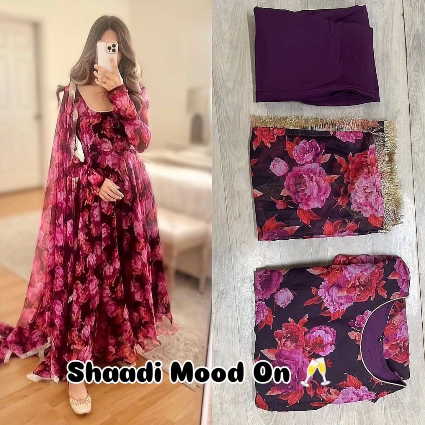Floral Print Anarkali Suit with Dupatta for Wedding & Party Wear